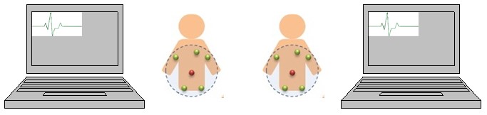 The project also aimed to develop a prototype of a low-power ECG sensor device. We worked with a hardware design group for antenna design and modulation implementation. I was in charge for the embedded system prototype development. We’ve developed the prototype on the chip MSP430 made by Texas Instrument combined with their antenna module. The figure below shows the scenario for demonstration: